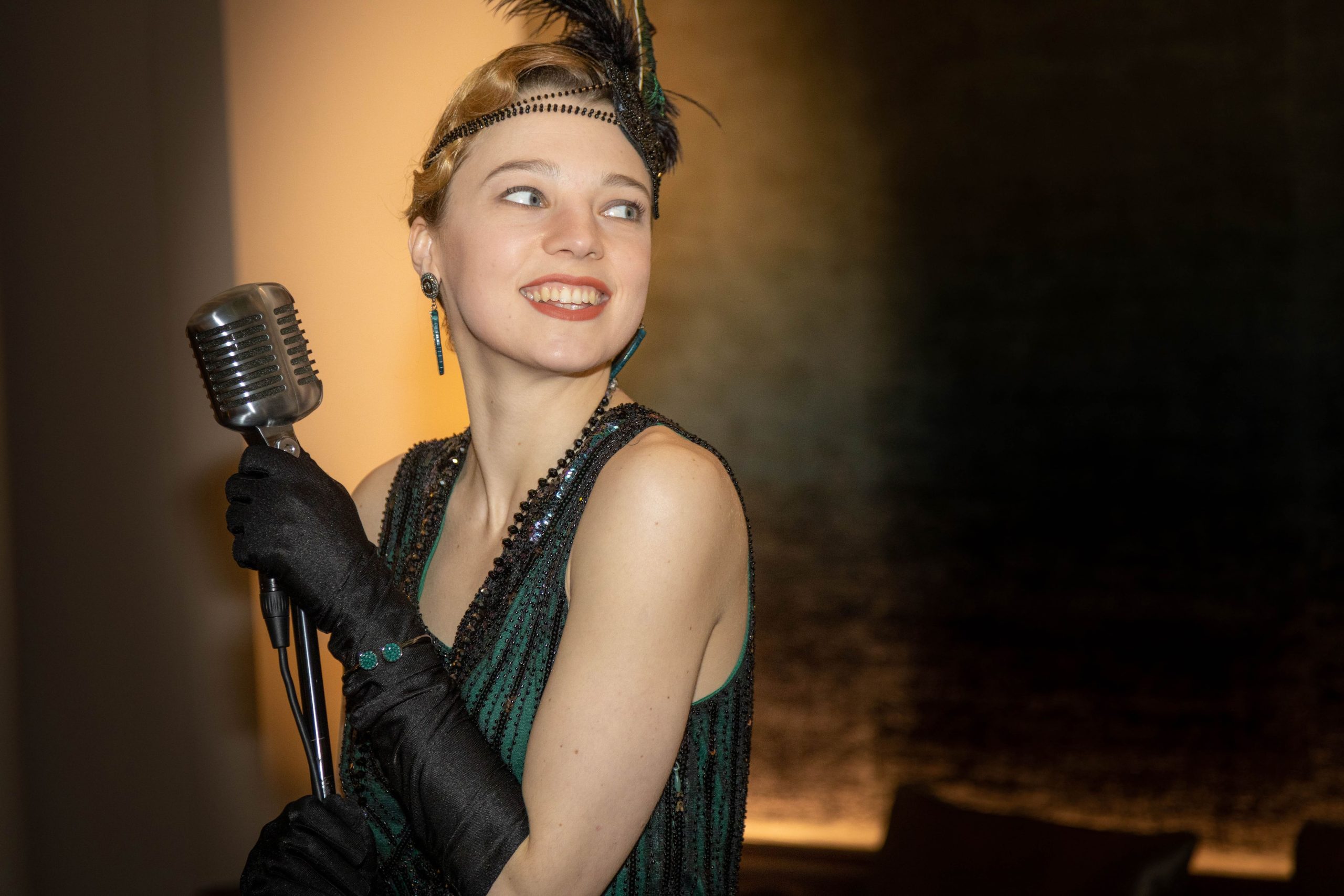 Le Miss Delmonde Vintage Band vous invite à un véritable voyage musical à travers le temps : une soirée où le jazz des années folles côtoie le charleston, le swing, le tango, le cha-cha-cha et d’autres rythmes venus d’ailleurs. Sur scène, les langues et les cultures s’entremêlent — français, anglais, espagnol — pour faire revivre l’âge d’or des comédies musicales et des films mythiques. Le répertoire comprend aussi des chansons revisitées par l’artiste, qui les transforme en nouvelles histoires, pleines d’humour, d’émotion et de modernité.